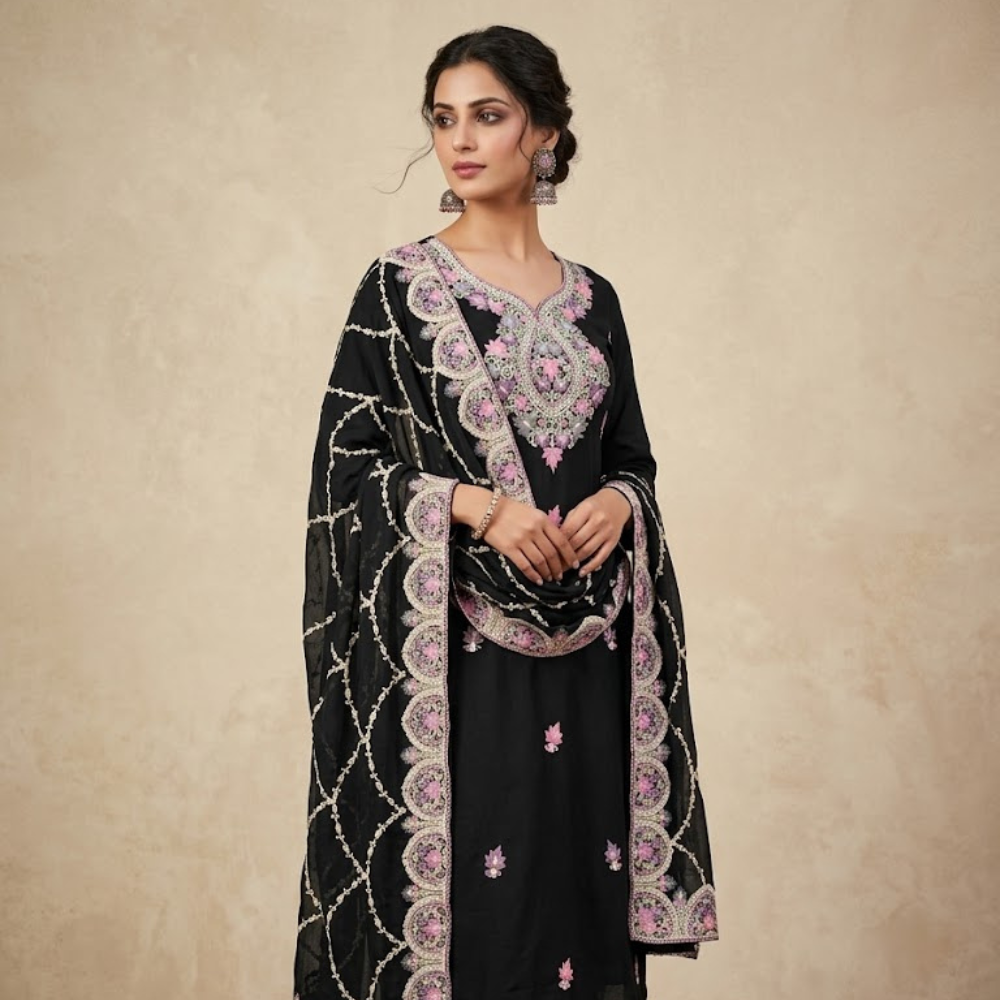 Signature Embroidered Dupatta: Comes with a matching lightweight dupatta featuring beautiful floral borders and scattered embroidery for a complete, grand look.